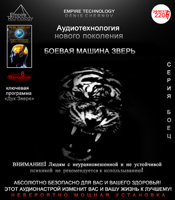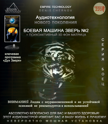 Аудиотехнология «БОЕВАЯ МАШИНА ЗВЕРЬ» пропишет в подсознание некоторые ключевые программы под названием «Дух Зверя»: